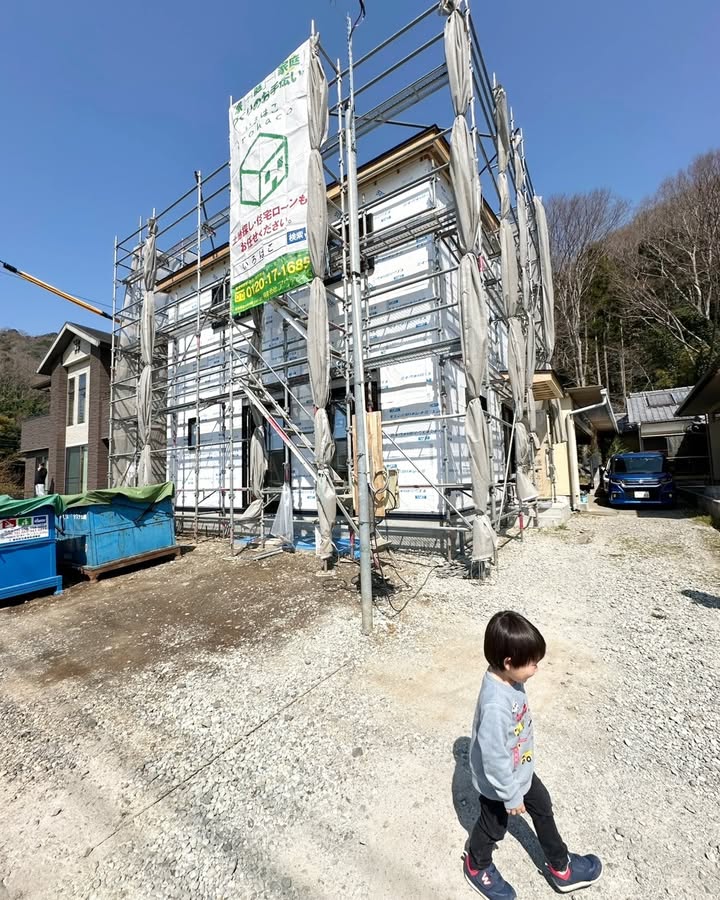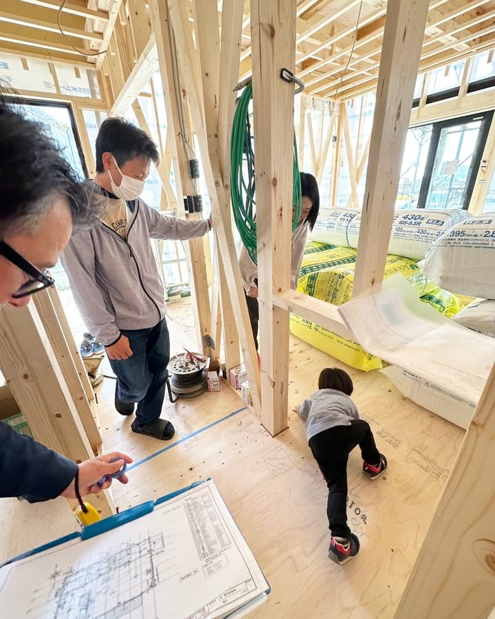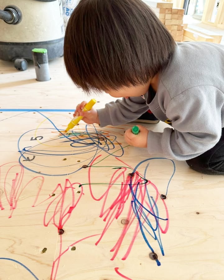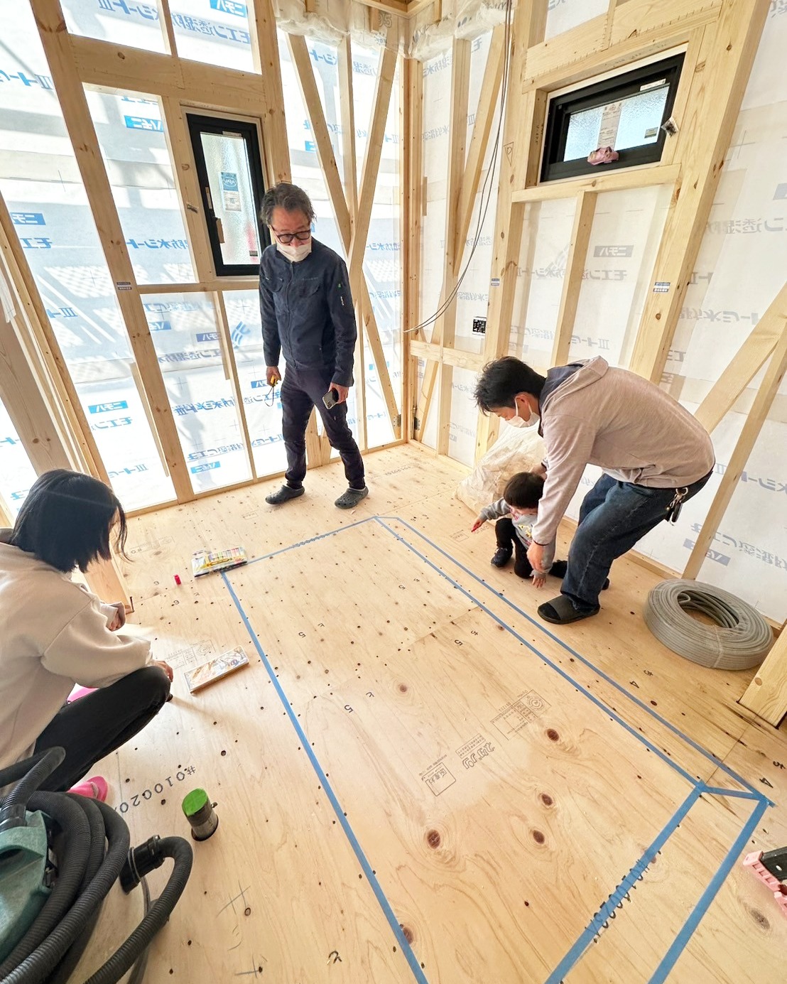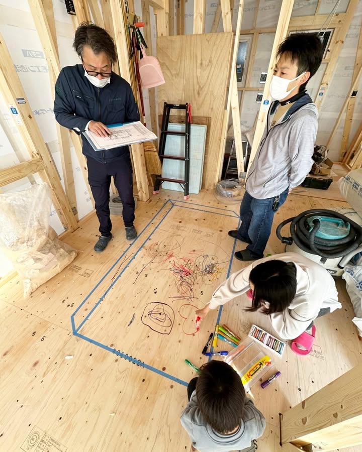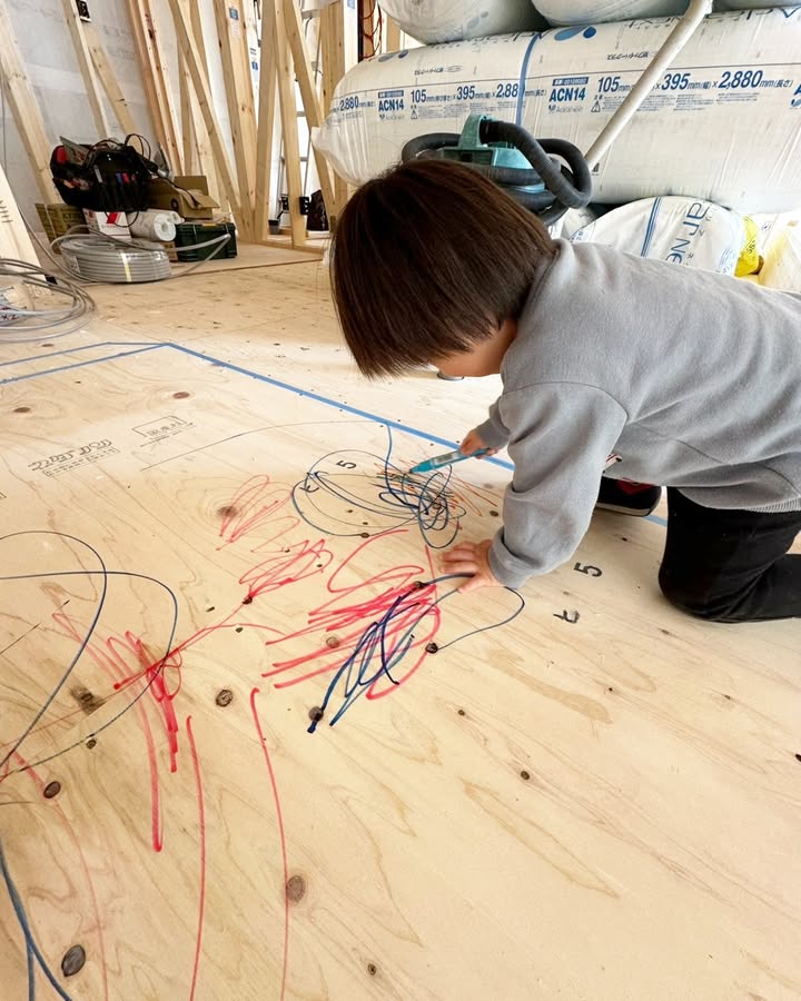 皆さまこんにちはいろはこです! 伊豆の国市S様邸の中間立ち合い 隠れるところにたくさんお絵描きしてもらいました♪