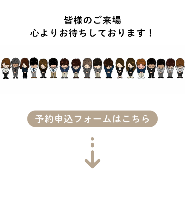 ※ご予約無しでもご来店頂けますが、担当者が不在の場合がございますので、予めご了承ください。