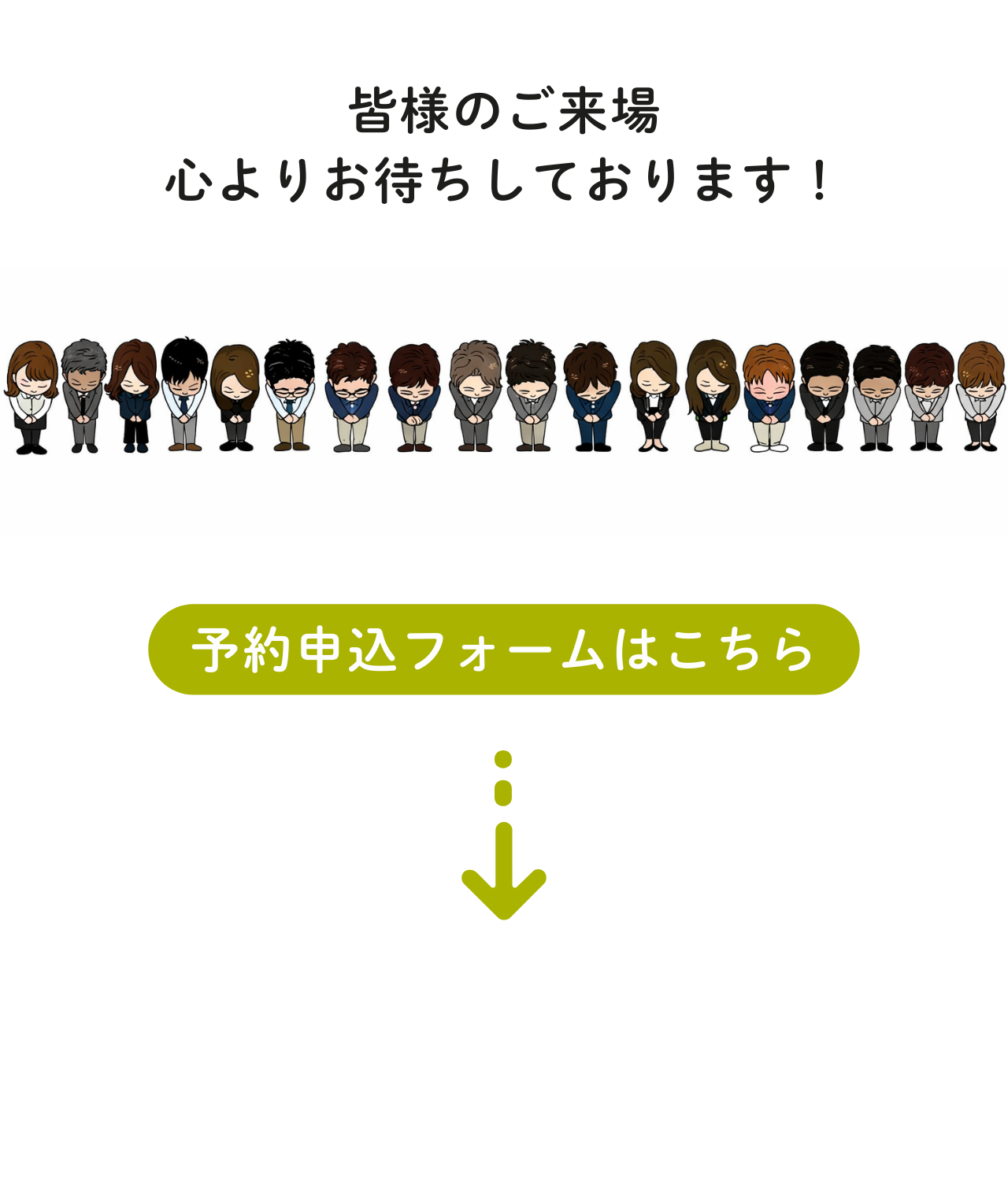 ※ご予約無しでもご来店頂けますが、担当者が不在の場合がございますので、予めご了承ください。