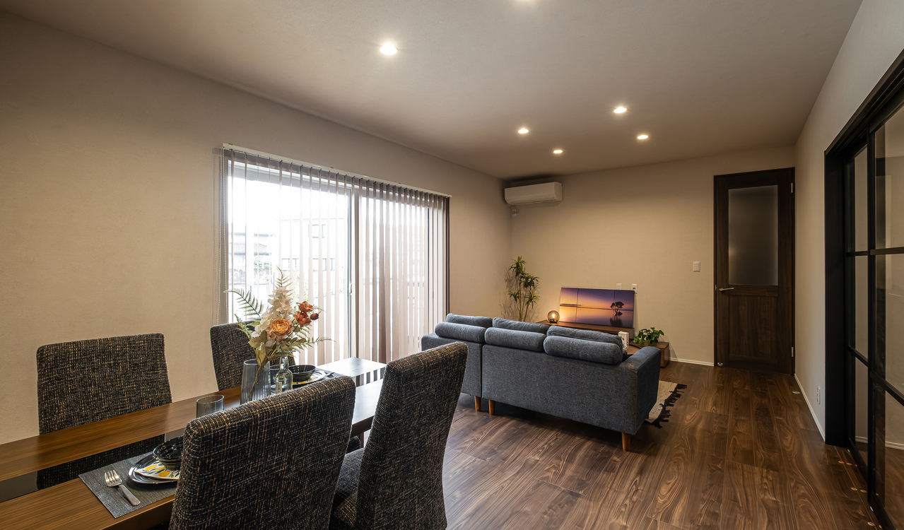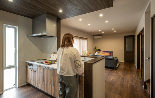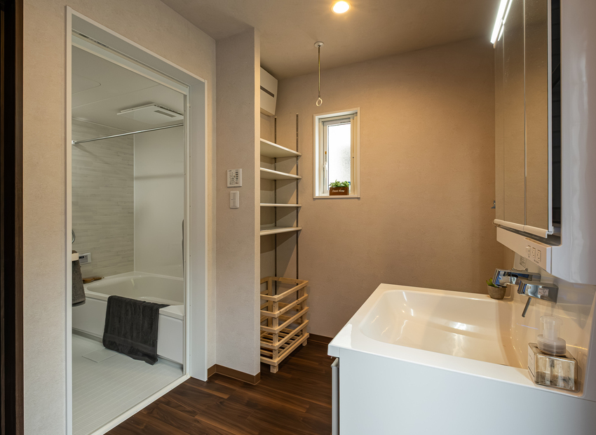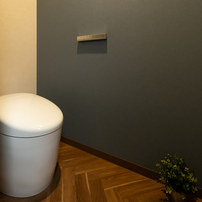 グレーと木目を基調としたモダンなLDKに家族の笑顔が集まる。玄関からウォースルーのファミリークローゼット→書斎→LDKへとつながる家事ラク動線、ホテルライクなトイレ、2階の大容量ウォークインクローゼットなど、家族のライフスタイルに合う間取りを叶える完全自由設計も『いろはこ』の強みだ。