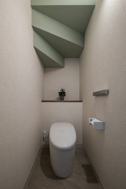 アクセントクロスで遊び心を取り入れた1階トイレ