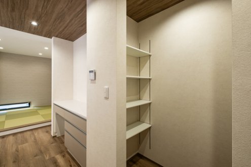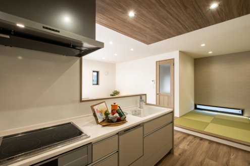 多用途に使える畳コーナーは、キッチンから目が届くので安心。大容量のパントリー空間も叶えられた