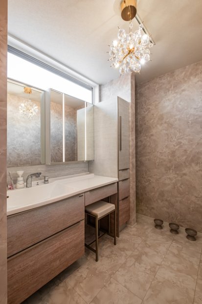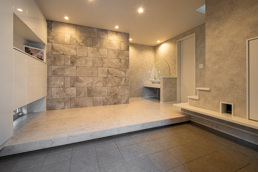 ラグジュアリーなエントランス。将来的に家族が増えても窮屈にならないよう、広めに計画した